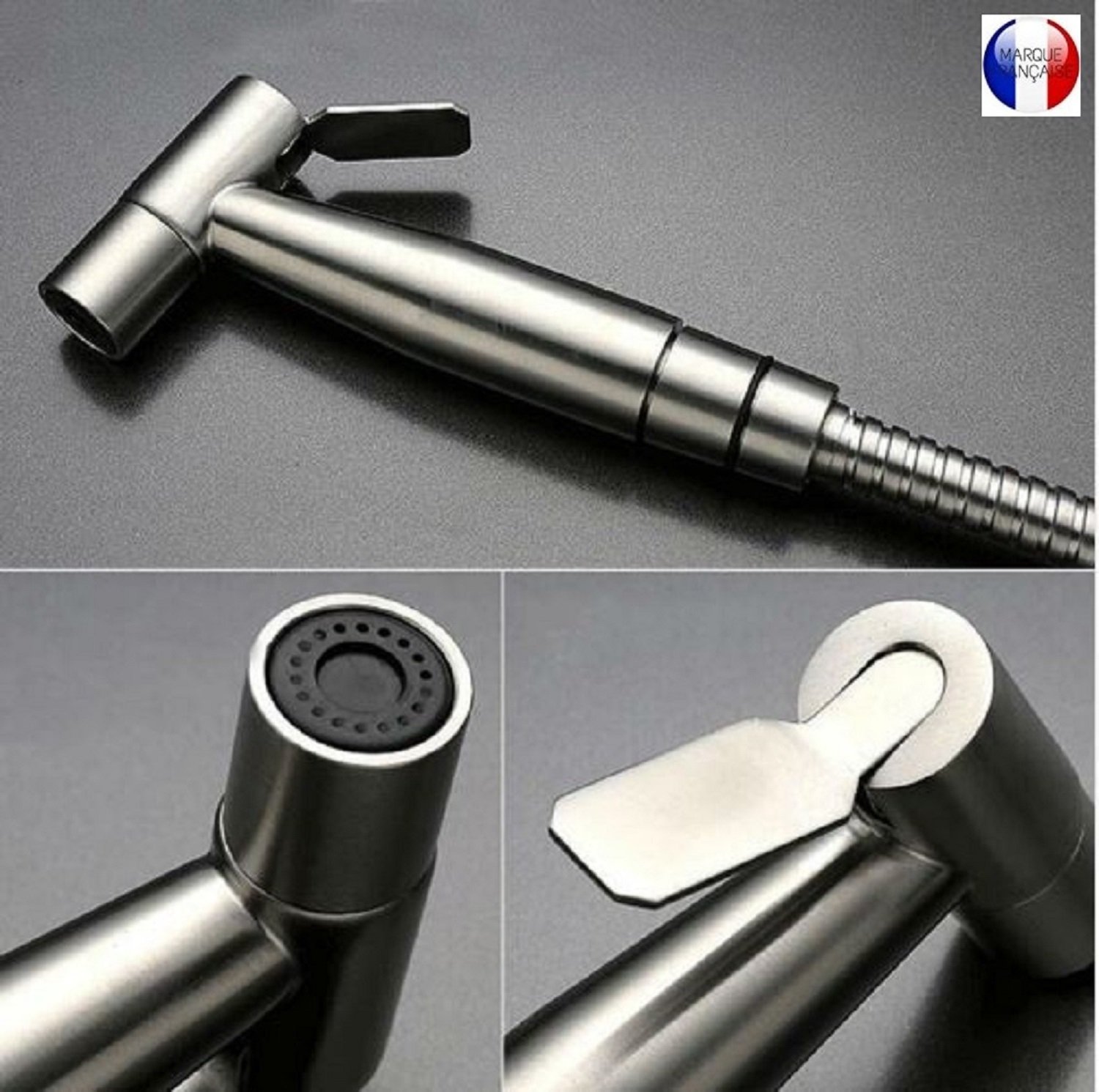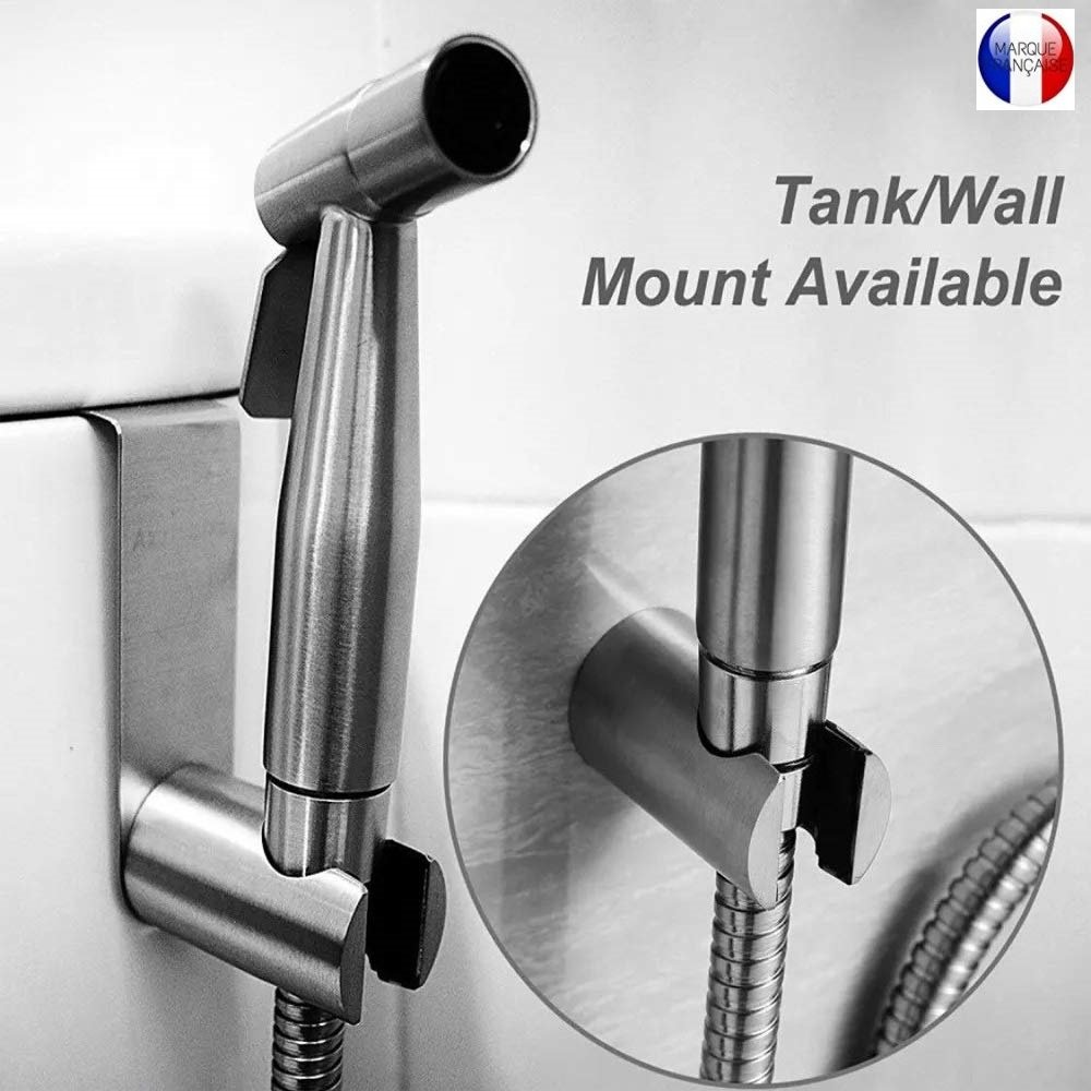 SUS 304 Simple Jet – Kit douchette WC pour l’hygiène intime – idéal pour les installations ayant une arrivée d’eau par tuyau rigide ou souple – Standard Français (3/8″) – Métallique – Taharat –